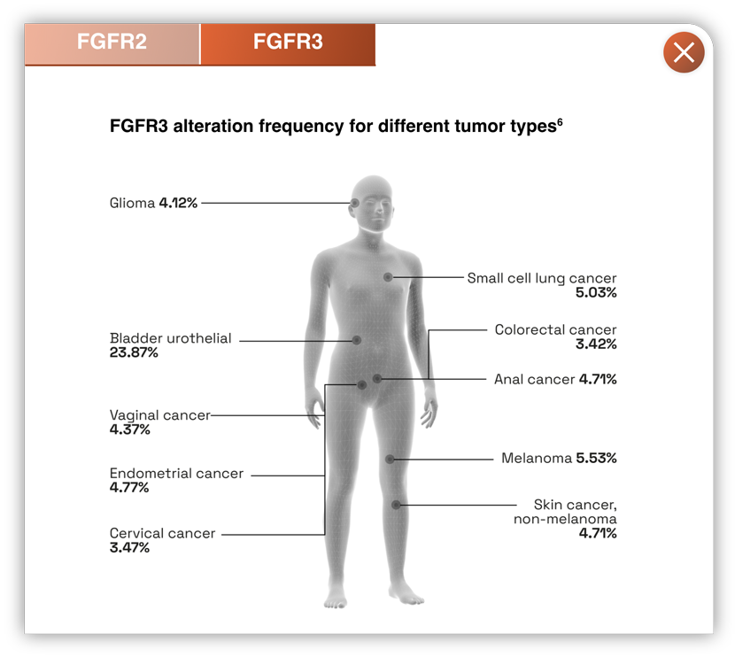 - Inhibition of FGFR3 mutations in urothelial cancer, and FGFR2 fusions in cholangiocarcinoma, has led to improved clinical outcomes1